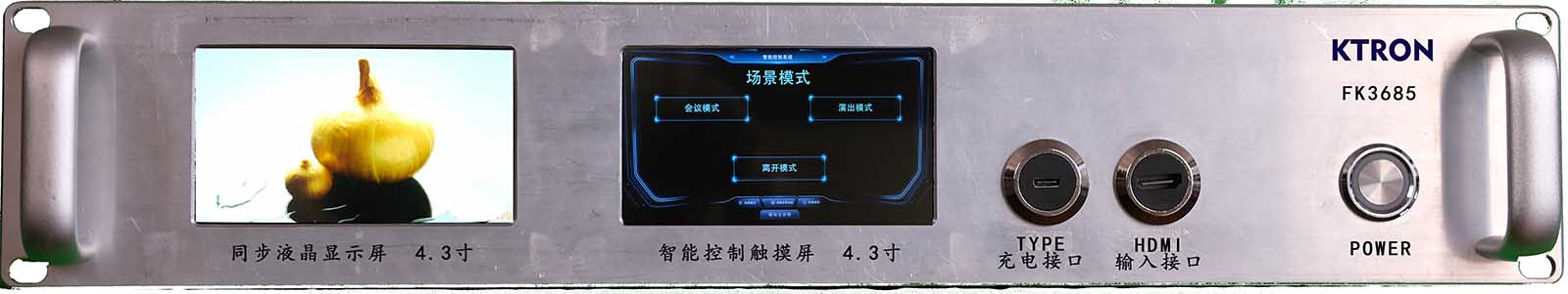 产品概述:FK3685是物联网音响主机(基于5G物联网音响系统控制主机),超融合一体化机架式高度2U,主机前面板同步液晶显示屏4.3寸*1个、智能控制触摸屏4.3寸*1个,1路TYPE充电接口,1路HDMI输入接口,1个电源按键开关;后面板具有3路5孔电源输出插座、1路HDMI输入接口、2路HDMI输出接口、2路无线话筒天线接口、1路红外接收窗、1路立体声输入接口、2路4芯音箱输出接口、8路RJ45网络接口、1路5G ANT天线接口、1路RS485输入接口、4路RS485输出接口。